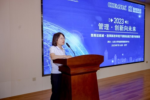 开班仪式上,申燕代表全体学员发言,非常感谢山大管理学院和公司给我们提供了一个携手新知、交流互鉴、共创未来的学习交流平台,让我们重返课堂、能够近距离聆听专家教授的谆谆教诲。