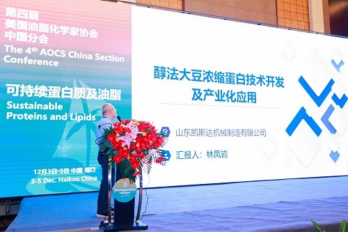 作为大豆精深加工领域的全球领军企业,山东凯斯达应邀参加此次年会,总工程师林凤岩研究员在大会上作《大型智能化醇法制备大豆浓缩蛋白成套装备技术开发与应用》的专题分享。