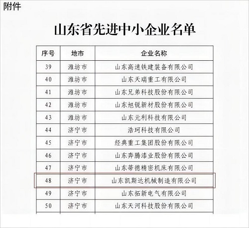 山东凯斯达入选首批山东省先进中小企业