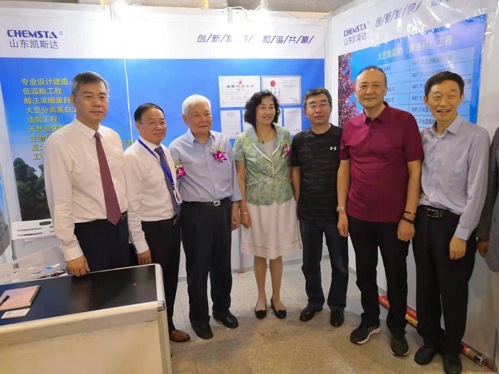 会议期间,中国粮油学会张桂凤理事长、中国粮油学会首席专家、油脂分会名誉会长王瑞元教授、中国粮油学会油脂分会何东平会长及分会其他领导、行业代表莅临山东凯斯达展台参观指导。张明董事长向各位领导简要介绍了山东凯斯达近年来在国内、国际两个市场、在油脂工程、大豆深加工生产大豆蛋白装备制造领域所取得的业绩和创新成果,学会领导对山东凯斯达近年来所取得的骄人成绩给予高度评价,特别是对山东凯斯达在醇法制备大豆浓缩蛋白大型化智能化成套装备整体技术水平已达到国际领先水平再次给予肯定和褒奖。